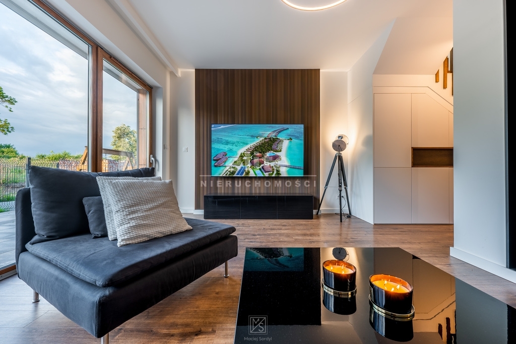 - przestronny salon z kominkiem i wyjściem na taras
